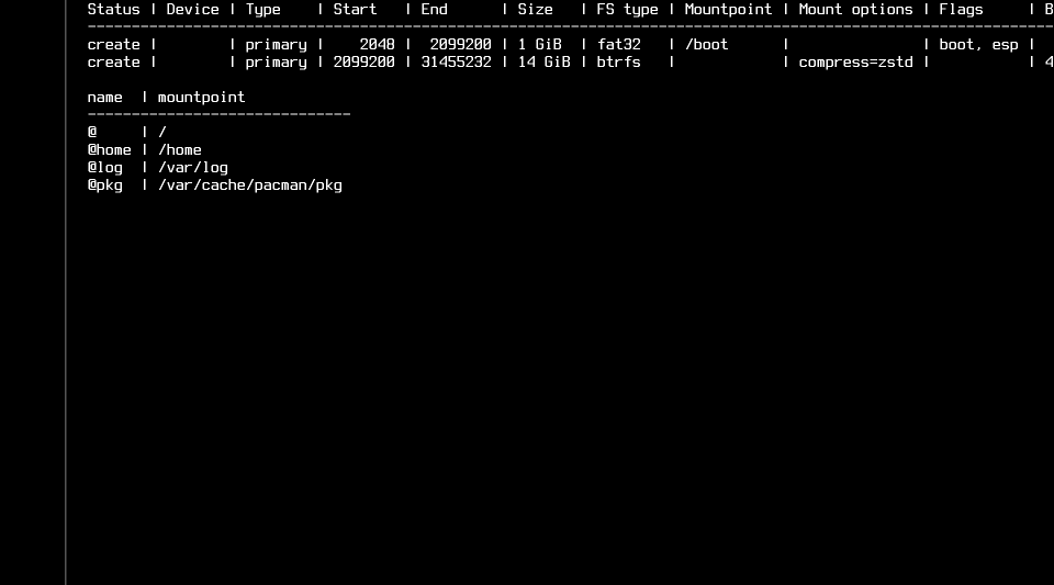 実際のUIを見ると、以前のcursesベースの無骨なメニュー画面から、グリッドレイアウトと色分けされた選択肢を持つ整然としたインターフェースに変貌している。パーティション設定やブートローダー選択といった、間違えると取り返しのつかない工程で視認性が上がるのは、見た目以上に実用的な改善だ。