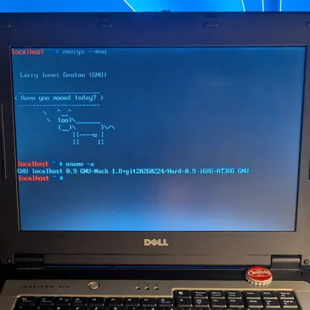 だが数日後、冗談は修正され、その裏から本物が姿を現した。Gentooは実際にGNU/Hurdへの実験的なポートを完成させており、QEMUで起動できるビルド済みディスクイメージまで公開していたのだ。冗談に実物を仕込む──Gentoo開発陣のユーモアは、なかなか凝っている。