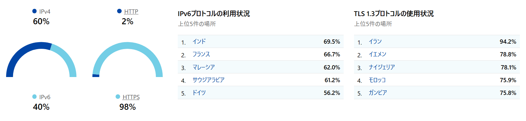 対照的に、中国はAPNIC計測で45%前後、Google統計では24%程度にとどまる。ただし中国政府の報告では、IPv6ユーザー数はすでに全インターネット利用者の77%を占めるともいう。計測の定義が違えば、数字はまるで別物になる。