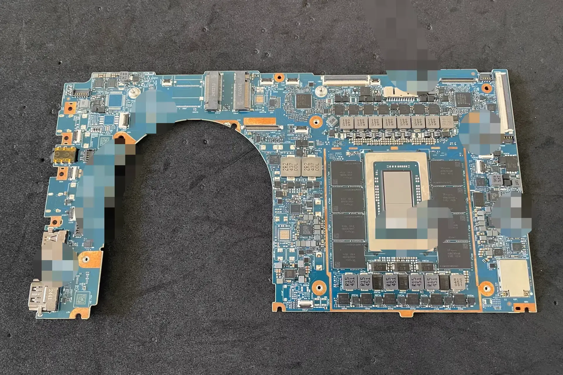 公開された写真に写っているのは、ノートPC向け基板としては明らかに常軌を逸した構成だ。