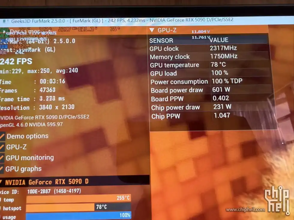 初の実機レビューを投稿したのは、中国PCコミュニティChiphellのユーザーshansoftだ。UNIKO's HardwareがXで取り上げたことで英語圏にも拡散した。テスト環境はGIGABYTE GeForce RTX 5090D AORUS Master ICEをFurMarkで600W負荷させるというものだ。
