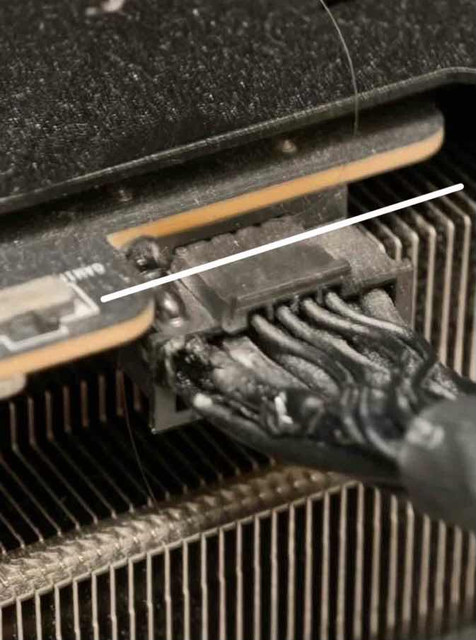 だが、PSU側のコネクタは溶けていない。ケーブルこそ黒く変色しているものの、損傷の中心はGPU側に集中している。発熱源がコネクタの接触面にあったことを示唆しており、挿し込み不良ではない可能性が高い。